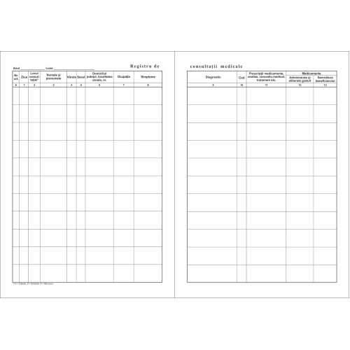 - Cod produs:Registru de consultații medicale A4 vertical - model 1