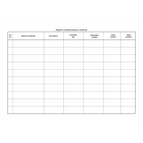 - Cod produs:Registru evidență deșeuri medicale A4 - model 1